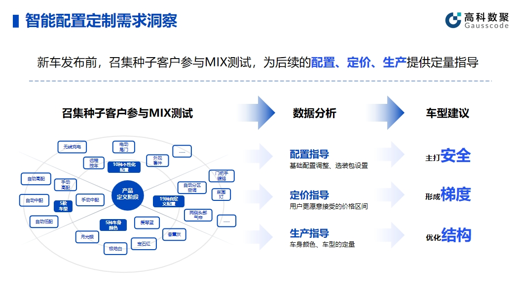 智能配置的有效应用可以帮助企业提升产品和服务的智能化水平。在实际应用中,PA视讯PlayAce帮助车企在新车发布前召集种子客户参与MIX测试,顺利获得收集种子客户的反馈和数据,车企能够精细调整产品配置,为后续的配置、定价、生产给予定量指导。同时,这种方法不仅有助于提高产品质量,还能提前发现潜在问题并及时解决。